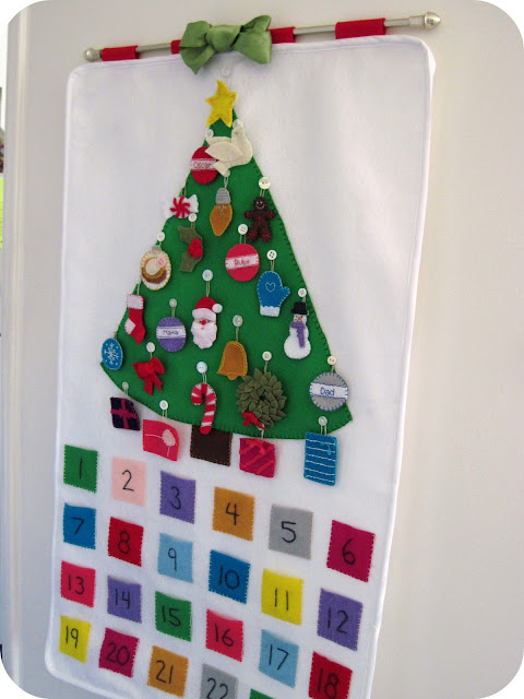 Teach Mama has a tutorial for this simple Christmas tree advent calendar, made from small plastic tubs: