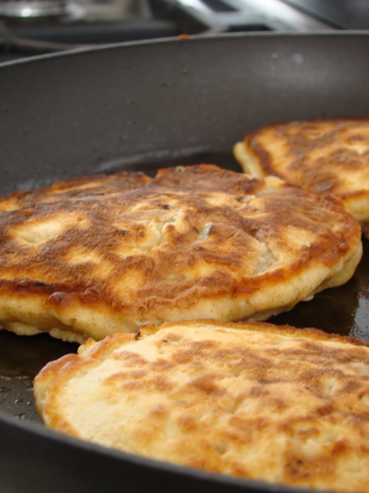 The recipe is supposed to make 12 pancakes, but I super-sized mine and only made 7. I actually forgot to add the sugar, so mine needed a bit of maple syrup to sweeten them up. Otherwise, I loved the cooked-apple tastiness.