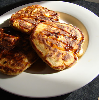 4. Heat a non-sitck frypan over medium heat. Brush pan with a little of the remaining butter. Pour 1/3 cup of batter into pan (repeat if you can fit more than one pancake in your frypan). Cook for 2 minutes or until bubbles start to appear on the surface. Turn and cook for another 2 minutes.