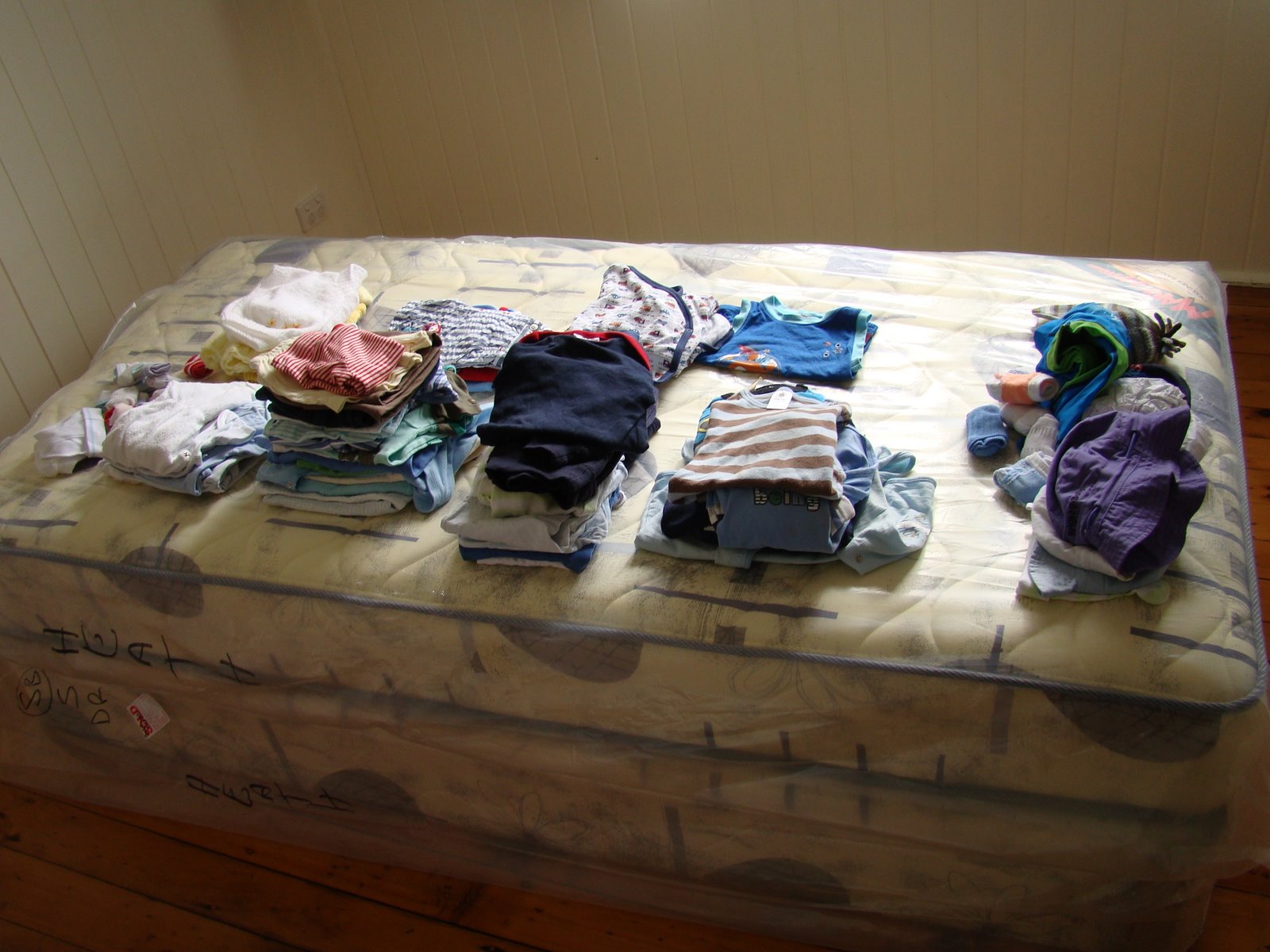 I now have a much better idea of what I need to buy for Princess Jellybean, notably teeny-tiny long-sleeve clothes, since she’s due in Spring and Number 1 Son was a summer baby. Now I shall bask in the glow of being organised (at least in one tiny part of the house!).