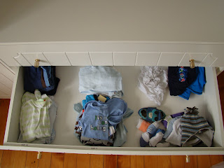 I kept all my son’s baby clothes as we always wanted more than one child. However, I never really had a system to keep the clothes he’d grown out of organised. I just shoved them in a drawer (and sometimes on a shelf) in Number 2’s bedroom. This is what it looked like: