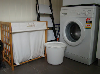 Round up washing…take it downstairs…put it in the washing machine…turn washing machine on…wait wait wait…get it out…hang it out to dry…take it off the clothesline…fold it…(iron it – um, not likely)…put it away – All with a baby and toddler demanding attention, not easy!